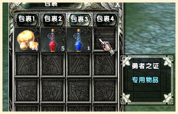 “勇者之证”异常神秘,玩家在获得以后,在包裹内的空格处不显示,当鼠标放在它上面时,可以显示它的物品属性。